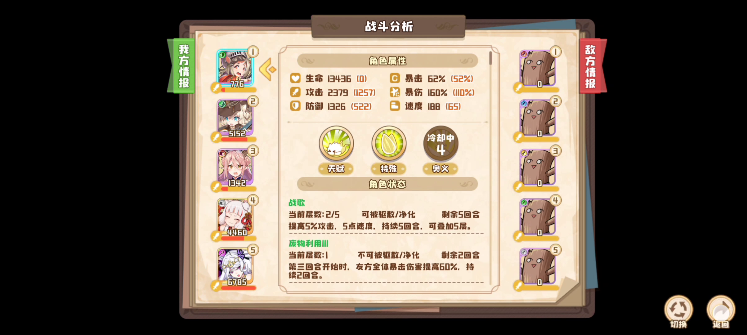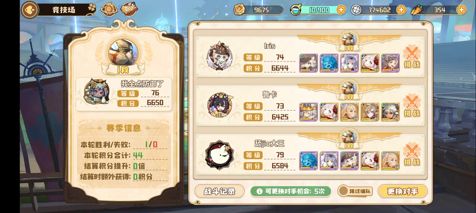 竞技场打双仓鼠,全员满血结束战斗 黑猫继兔子之后成为我的新神! 这个阵容相比较我之前竞技场的五肉毒瘤阵容,黑猫换下了人马,全队和偷心的相性更好,黑猫的概率减cd能让热度值增加得更快,2回合的攻击buff也能给予全队更多输出。 目前黑猫五星,拉丝五星,等这俩都6了可能真的能达到无敌的境界。 高潮剧照除了偷心之外,那个标记敌方最高攻击的活动剧照应该也比较适合,(五个大肉一人一拳捶死敌方后排输出),不过我还没有测试过效果。 总的来说加强后的黑猫强度远远超过我的预期,而且黑皮。。。很戳xp