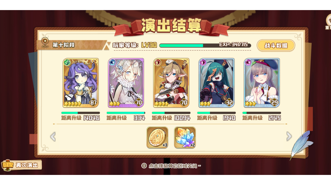 运气好开包出了宿敌2,干脆拿精华换了1 打的困难7-4的本,推荐100级。宿敌1的debuff白可以解,这次白暴毙了没开出大。 宿敌2只要60热度就能触发,莉莉大招带别人小技能可以直接无限连发加石化。理论上只要第一个大招开出来对面就动不了