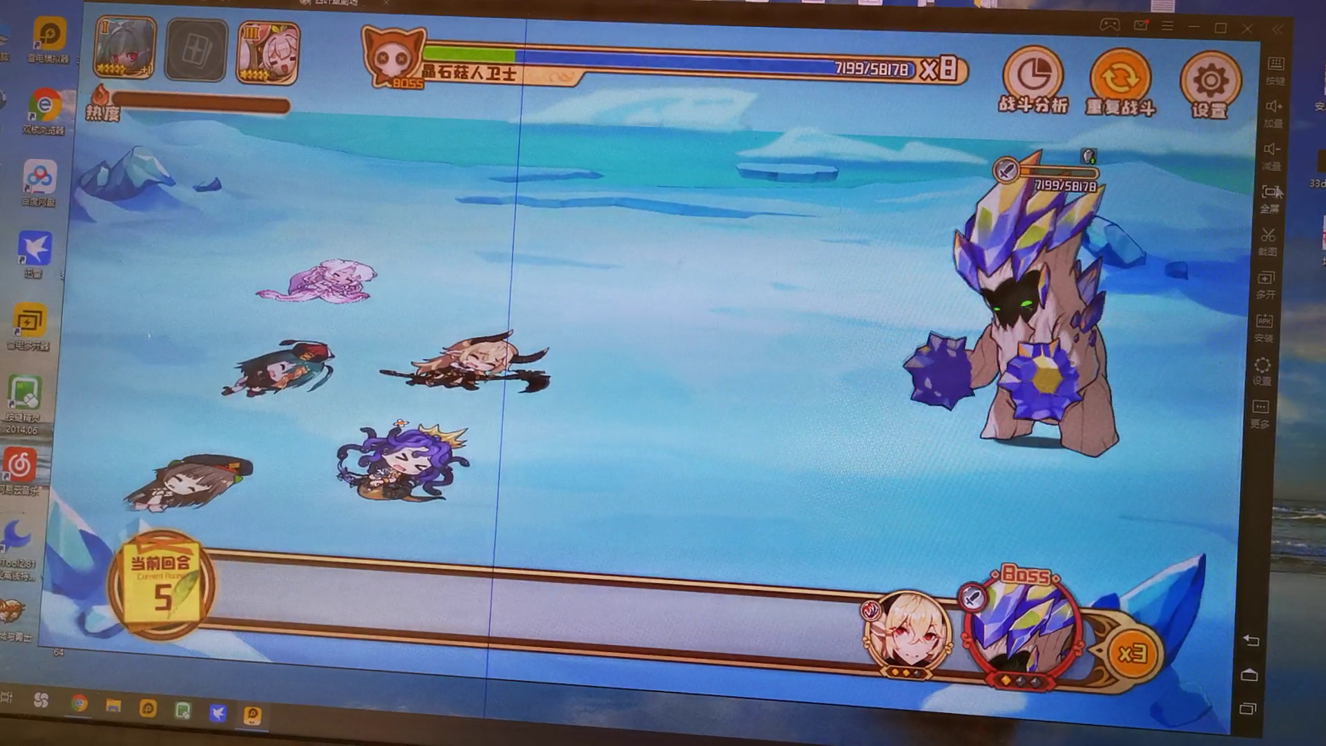 在热砂寨落第三天王的时候,敌人二段变身之后我方血量还是保持在第一次打之前的血量,但是计算伤害的时候是把两次的伤害加起来一起算的,我这次录的算运气好的,之前有两次运气不好直接无两个角色。