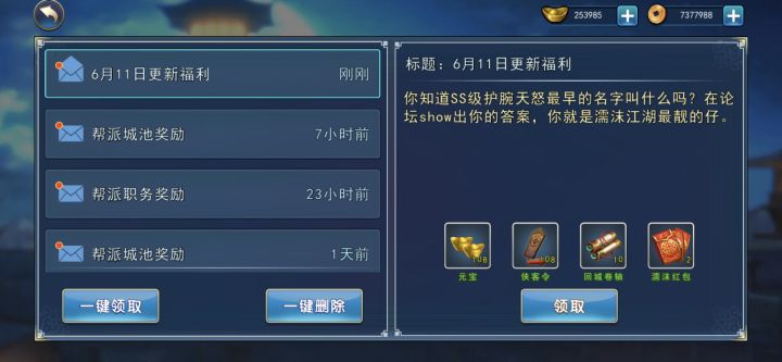 想成为一代武林豪杰,内功的修炼是万万不可或缺的。学习内功的同时,也是在提升基础内力,它将从万物星辰中吸入清气,滋养及混合体内的先、后天之气,从而使体内真气充盈全身,会大大提高防御、气血、攻击等内功属性。《濡沫江湖》游戏中将内功分为了不同的等级,为了督促大家可以尽快掌握各式各样的内功功法,特为各位少侠准备了“集S内功,赢元宝”的活动,习得的内功种类越多,你将得到的元宝奖励也就越多,活动时间相对比较