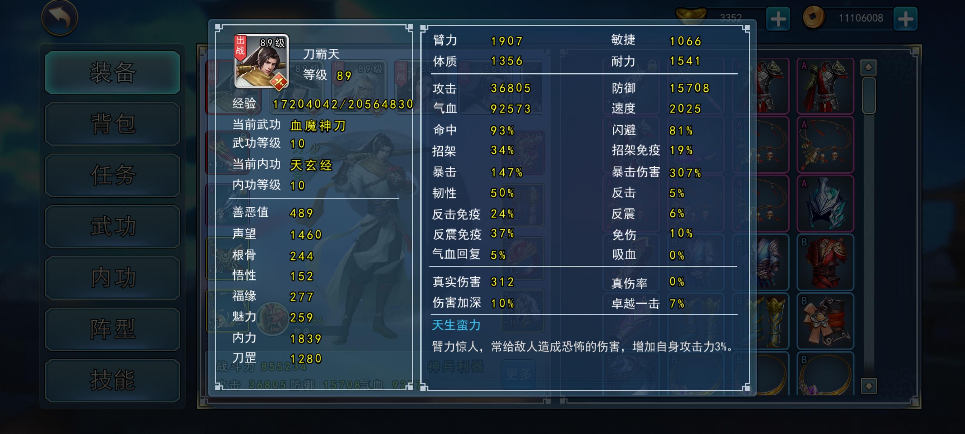 身为一个0氪(吃元宝)刀主,我感觉91天能通关了主线也算是比较快的了,感谢群友和大佬们的帮助,才能这么快的通关。攻略啥的我就不做了,论坛上很多都很有用的,就简单说一下我的,上图是我过主线的刀攻和阵容,进场的buff有两狼,官配,3级奇门五行;千沫虎子血煞掌洗打二,官配阿星带减防剑,千沫阿星官配都有防爆,这些是我觉得比较关键的。好了,肝死我了,终于过完主线了,完结撒花,养老去了