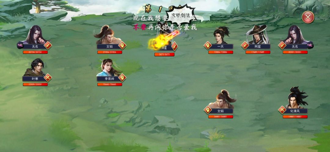 在尝试多次拳当前排打不过之后,就突发奇想,想用剑当前排打一次试试,结果直接过了,其中运气占很大一部分,对面绝世高手独孤一剑感动我了,谢谢他。我的拳的眩晕也很到位。对面的的两个拳一直没醒过。