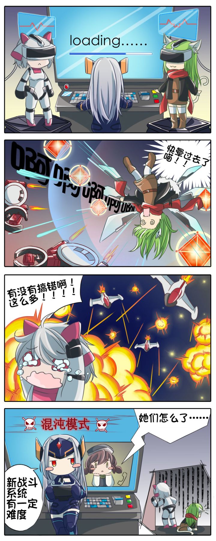 沉寂了几周的荷塞拉四格漫画终于又回来了!!塞拉在前几天公布的开发情报()有说到关于开发中的游戏新模式~~其中有一个叫做馄饨(雾)模式的...在测试过程中发现了一些不得了的东西....总之先让R-0登陆战斗!!没有想到革命军的战斗模拟如此次鸡!~~~不要问塞拉为什么喵会倒过来~~这下没办法把革命军变成喵咪天国了吧!哼~日后~~大家也一定会有倒过来玩游戏的机会的(恶魔脸)据说某年某月某