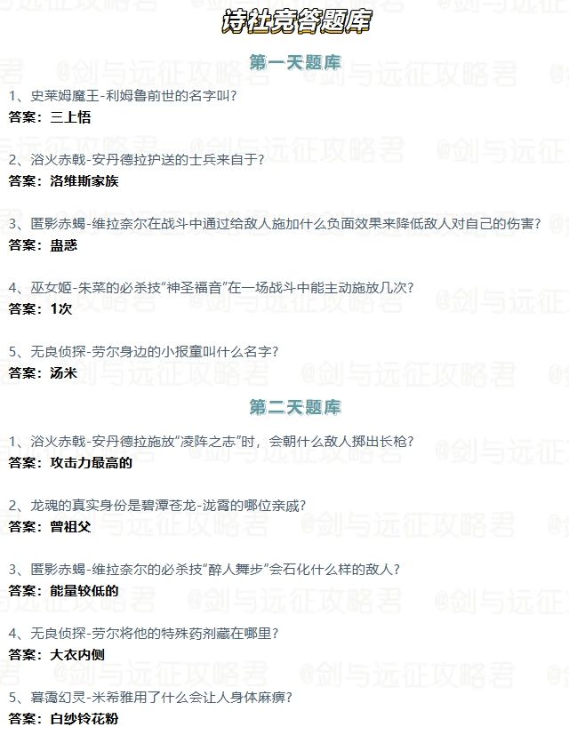 哈喽各位铁汁们,“诗社竞答”明儿就上线正式服了,那么今天攻略君给大家带来“诗社竞答”Day1-Day5题库一览。文章基于个人游戏理解,制作不易 ,仅供参考 ,不喜勿喷。