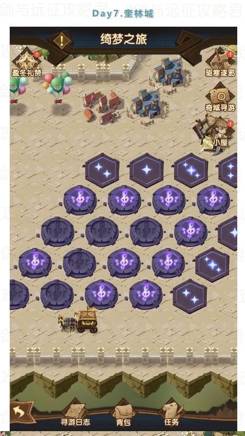 哈喽各位铁汁们大奇境“霜雪绮梦”先锋服已完结,那么今天攻略君给大家带来绮梦之旅 大奇境活动攻略。欢迎各位铁汁文末留言区交流,文章基于个人游戏理解,制作不易,仅供参考,不喜勿喷。 写在前面 阿攻碎碎念 本期大奇境略带一些小解密,整体难度不高,但是也有不想体验只想速通的铁汁。所以阿攻整理了一下部分卡点部分,仅供参考。 Day1.帝都赛凡纳 需要踩对格子不然会被回退到起点,走格子也只能一格一格走。