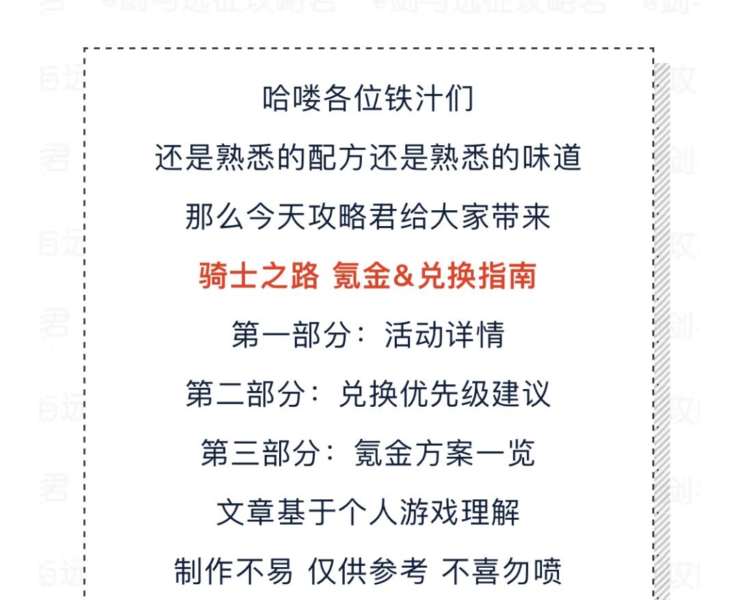 哈喽各位铁汁们 还是熟悉的配方还是熟悉的味道 那么今天攻略君给大家带来 神匣遗迹 氪金&兑换指南 第一部分:活动详情 第二部分:兑换优先级建议 第三部分:氪金方案一览 文章基于个人游戏理解 制作不易 仅供参考 不喜勿喷 神匣遗迹 活动详情 活动材料一共掉落12天 活动期间 每日可免费获取5*6=30个钥匙 活动期间共计可免费获取 30*12=360个钥匙 每个钥匙约等于1.5个石头 约等于12天即