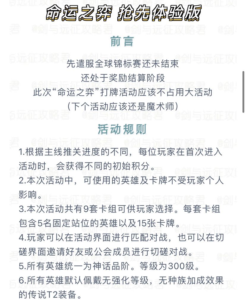 【攻略君】先遣服新出小活动 命运之弈
