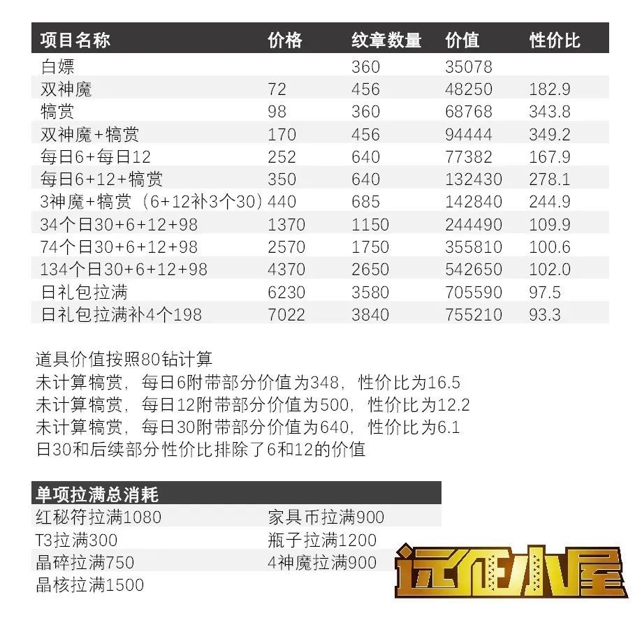 大家好,这里是夜莺攻略组的病娇。 本次活动犒赏部分看起来比较复杂不过性价比还是不错的。并且新增了每日12(买完每日6之后出现) 导致高性价比区间提升了,3神魔也有一定的性价比。 具体分析一起来看看吧~ 如图所示,本次福利价值约为35000钻,对比以往不算高。 微氪部分如果不买犒赏的话性价比一般般。 买活动犒赏的性价比大幅提高,高达34倍(和月卡,成长礼包类似。高于赏金社) 并且犒赏会加成已买的日礼
