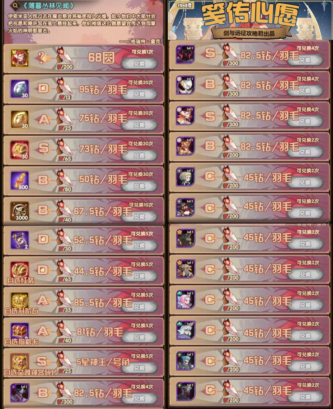 剑与远征 活动 笺语心愿 4-7天奖励分布 建议先收藏后使用