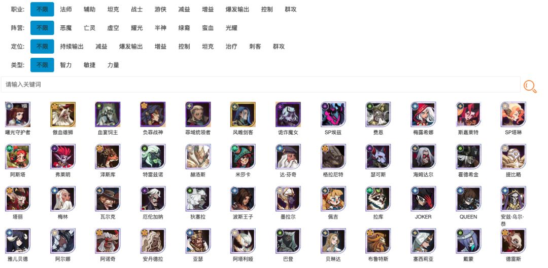 之前一直用的剑与远征攻略君助手的英雄图鉴,但是最近一段时间更新变得很不及时(可能看不上这点流量了哈哈)。 那我就整理一下,把最新的也放进去了。 我反正一直在玩,跟工会的一帮老SP们还挺热闹的,所以图鉴一直会保持最新,有需要的可以收藏一个,这样看个技能效果就不用打开游戏了。 另外网站里还有别的游戏的图鉴,也可以看看。#交出手机里的同人美图#攻略#游戏讨论#游戏推荐