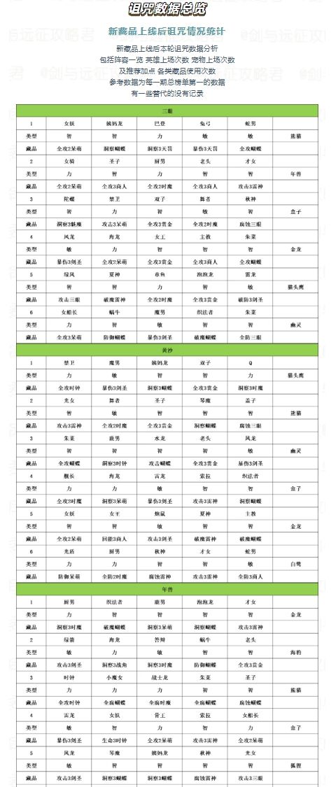 诅咒数据总览 2025/03/03-2025/04/07 本轮诅咒数据分析包括阵容一览、英雄上场次数、宠物上场次数及推荐加点、各类藏品使用次数。 参考数据为每一期总榜单第一的数据,有一些替代的没有记录。