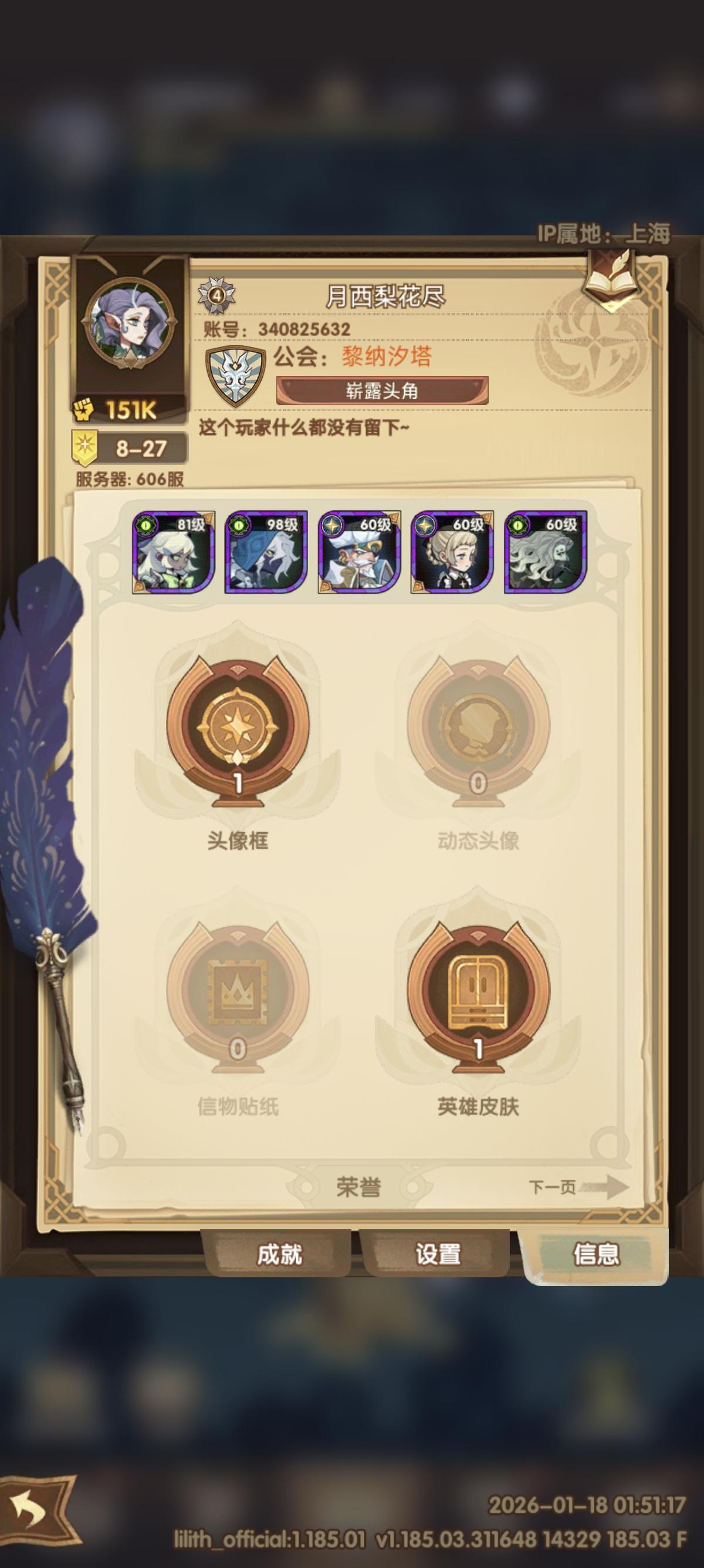 605开服6天,零氪,已经推图29章,感觉不算太慢。我在论坛找了许多攻略,发现都是几年前的,已经不适合当前的版本了。晚上睡不着觉,写点攻略希望对萌新有点点帮助。1。萌新初期推图为主,阵容可以照抄战役热度榜第一,全是亡灵英雄,如图1。没有Sp就随便凑一个。2.心愿单,如图2.3其他英雄除了阵营塔,其他没多大用,但是阵营塔的资源有限,初期没必要浪费资源培养,主要培养推图英雄。其中,绿裔阵营