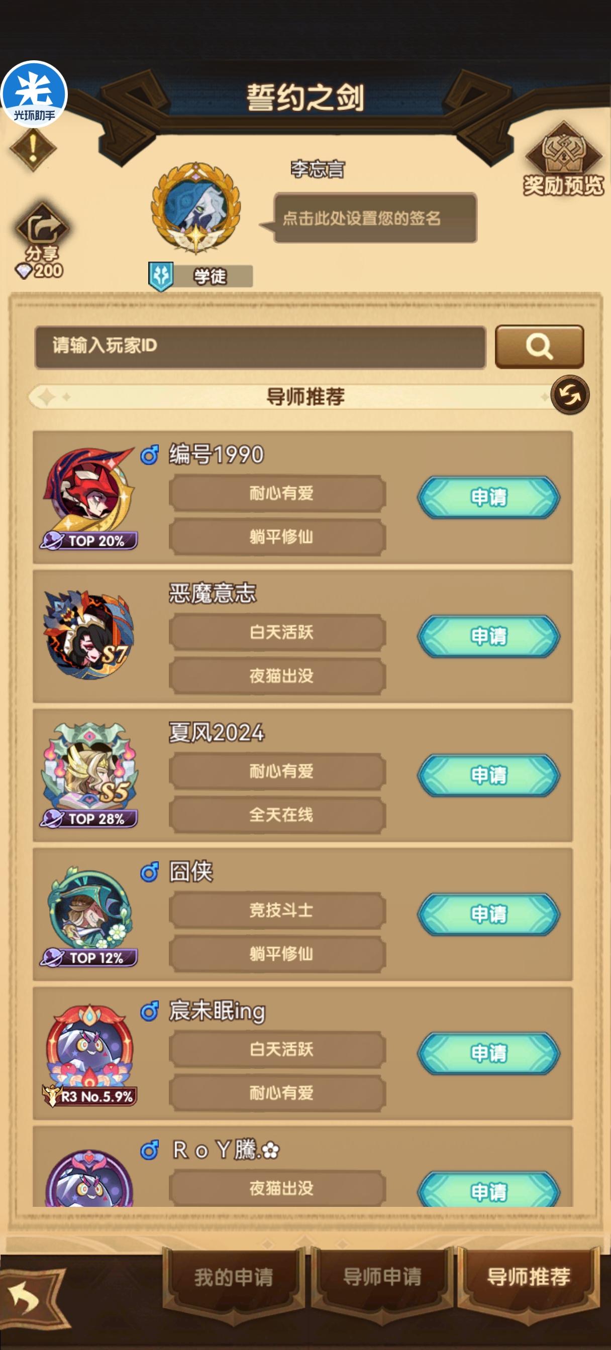 重生第三天找个导师有吗,申请了都没有一个同意。最好可以平时咨询下养成,抽卡,推图等问题的,有点耐心的,谢谢