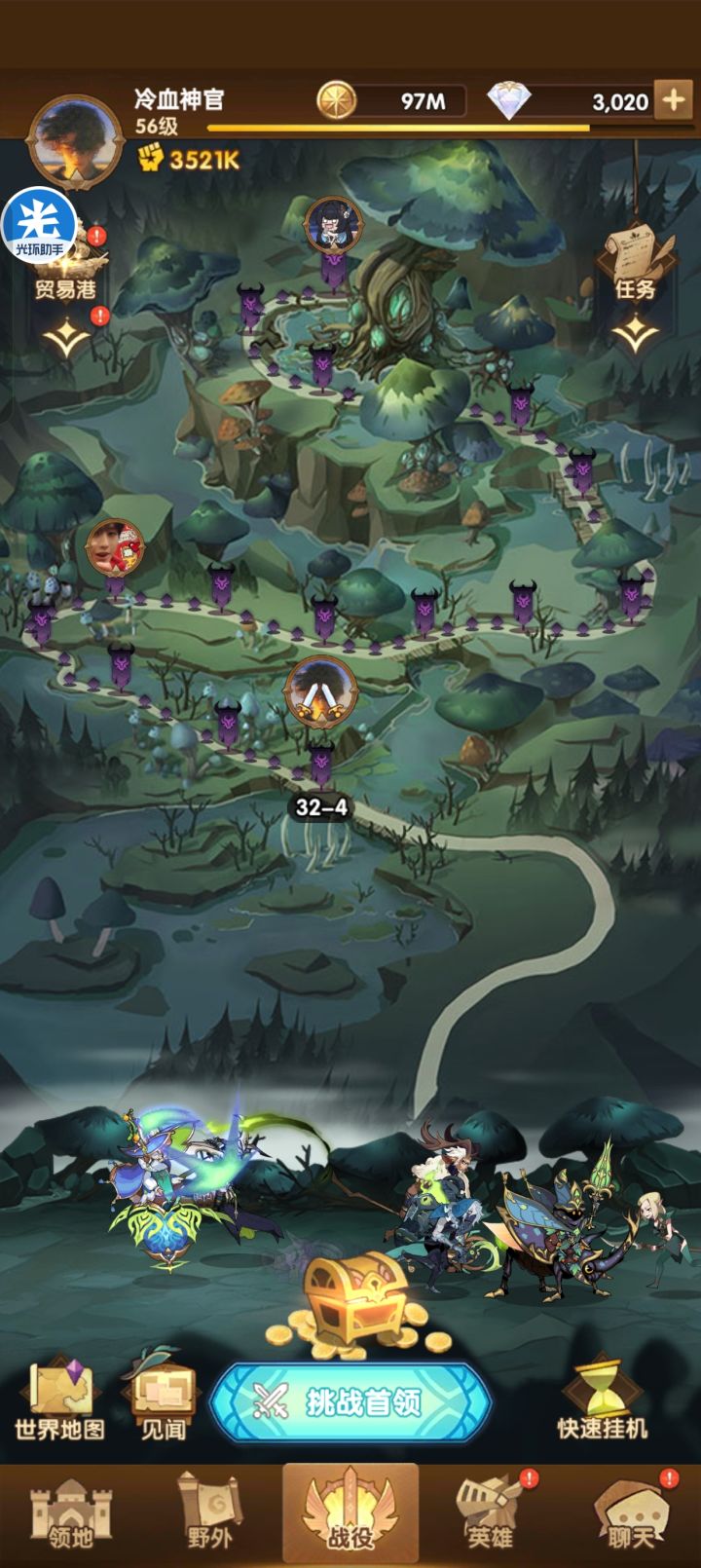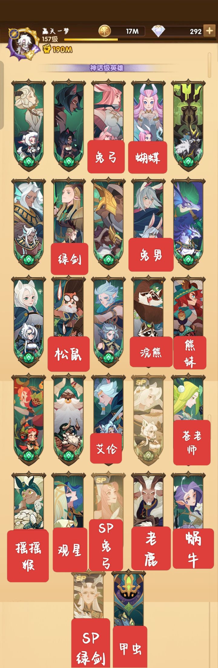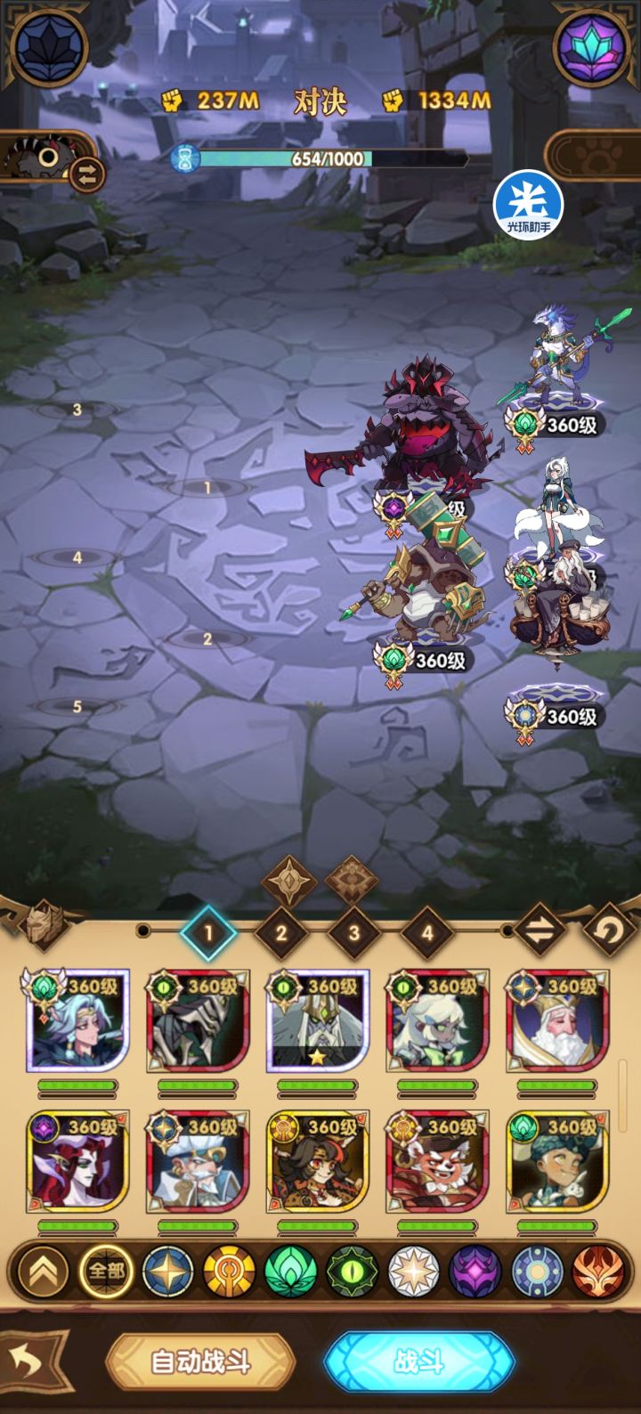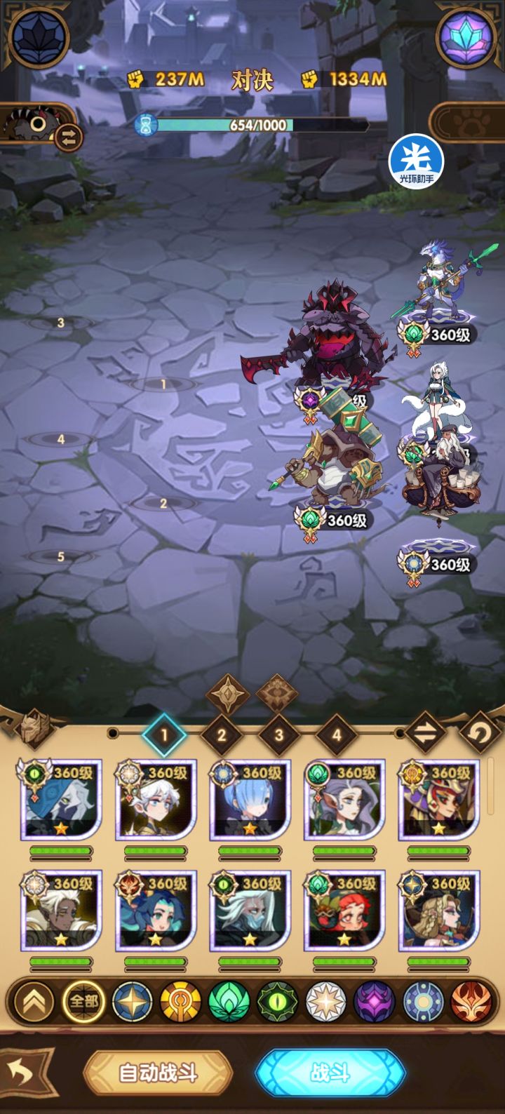 找大佬们帮忙了,阵容里面还可以多加一个紫色鹿头,求求大佬搭配一下,我自己搭始终只有3队稳一点,第4队稳不住了#剑与远征