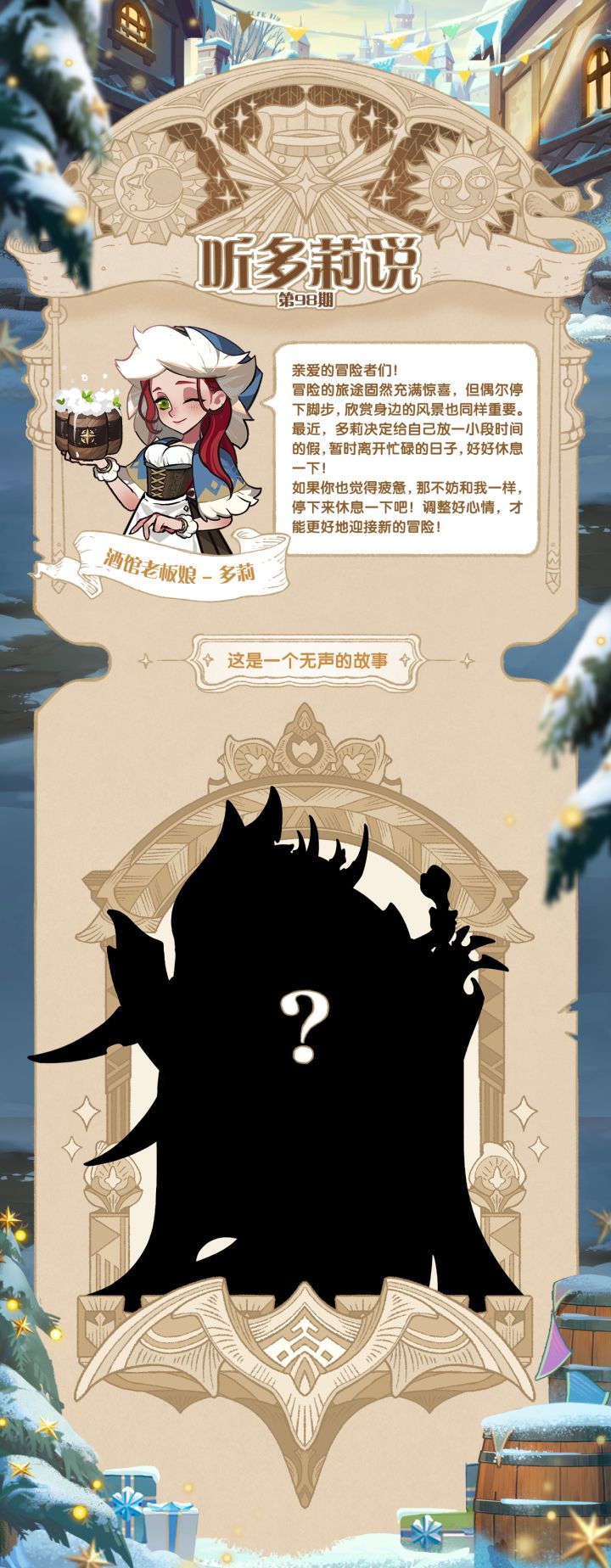 嗨!各位冒险者新年好呀我今天带来了一份神秘的英雄掠影!这次登场的会是谁呢?快来猜猜吧~莱妮丝将会在2月11日抽取5位参与猜测的冒险者送出钻石*1000#剑与远征 #剑与远征组队服 #游戏安利 #游戏推荐 #发现好游戏
