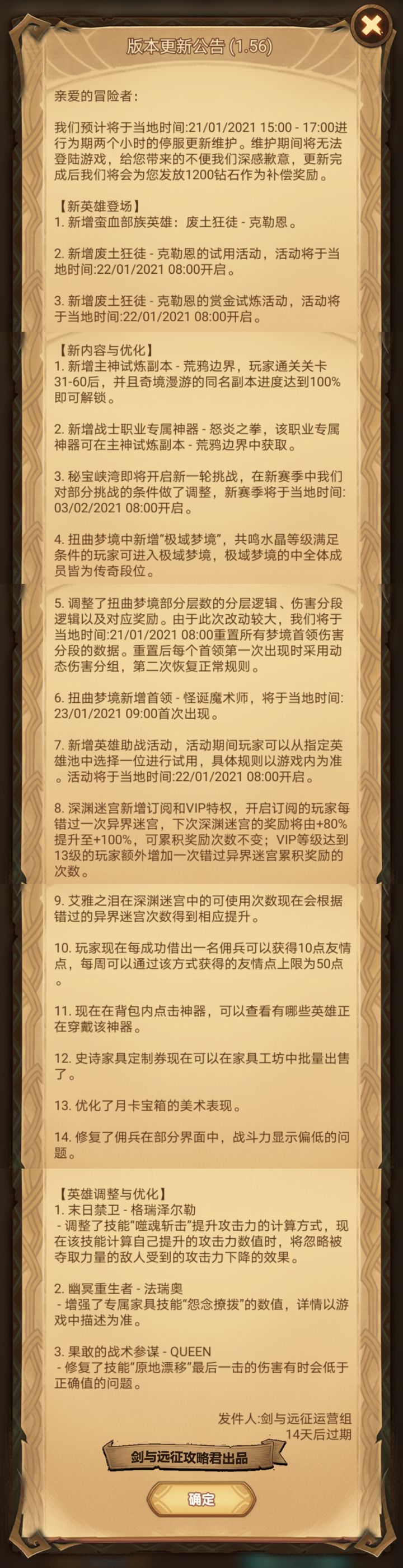 【攻略君】先遣服1.56版更邮件长图