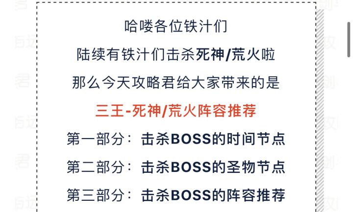 【攻略君】死神/荒火进攻节点及阵容参考