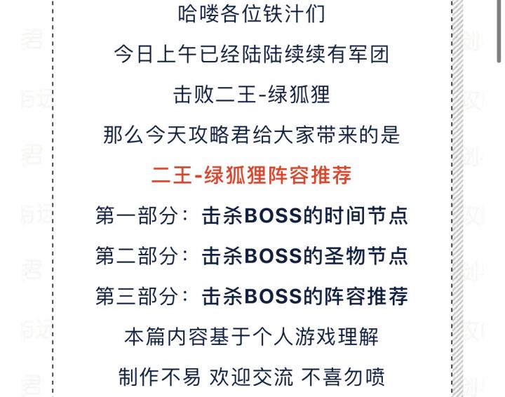 【攻略君】二王绿裔狐狸进攻节点及阵容推荐