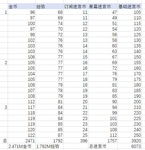 前言星幕以来,剑远的各项收益真的相比之前真的多了很多很多上一期我们谈了经验,金币,粉尘这些的基础收益本期谈一些其他方面的资源。所有分析仅针对微氪无氪,过程没兴趣的建议直接最下看结论迷宫收益分析统计了一次迷宫收益,大致如下:每次打哥布林各有1/3几率中3000迷宫币3000公会币10000高阶币估算为每次1000迷宫币1000公会币3333高阶币总计2.47M金币 1.79M经验 总