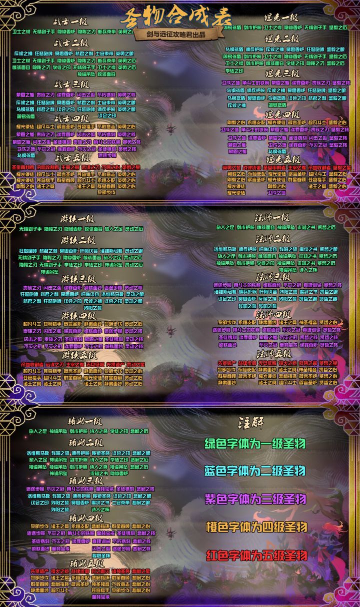 【攻略君】团本圣物合成表