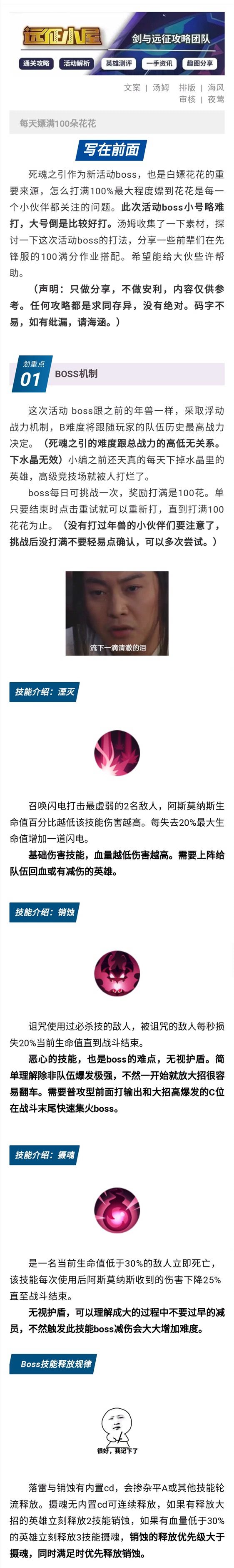 失踪人口回归~(最近汤姆工作较忙,大伙的留言回复得会不那么及时,但有空的时候我会一一回复,见谅哈)——————进入正题——————感谢公号小伙伴制图排版,今天探讨一下活动boss,结合了一部分同在小屋攻略组的病娇大大的死魂打法,走起~