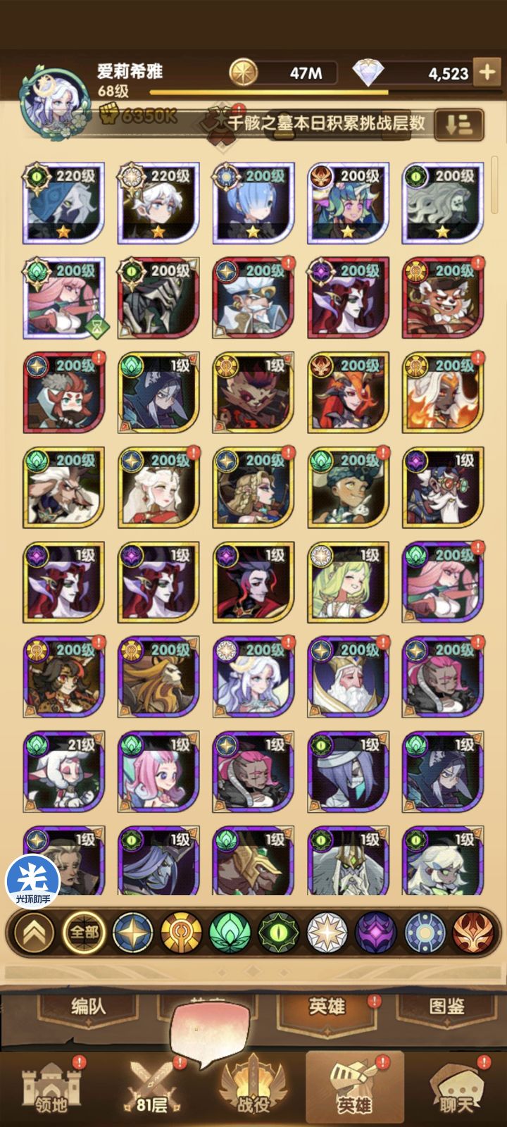 四天了才推这么一点,英雄也升不动,看别人发的一天两天都100多级金色的英雄,还有两天推二三十章的