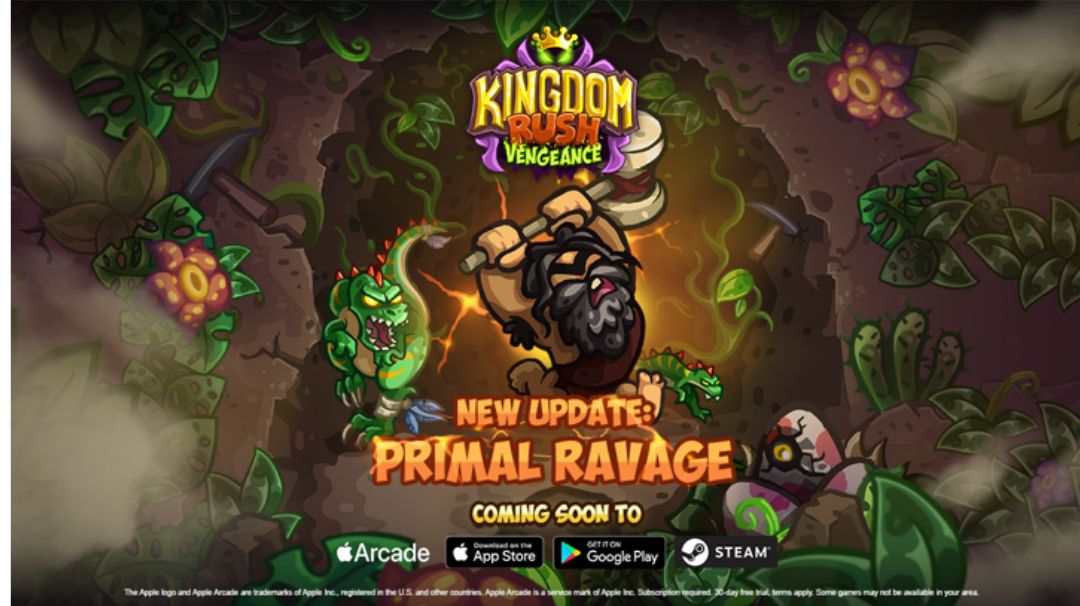 新支线 [原始蹂躏] 🦎🦖将于9.29登录iOS、谷歌商店和Steam,9.30登录苹果arcade订阅。新支线将会带来全新的三关和新敌人以及新的防御塔和英雄🎉