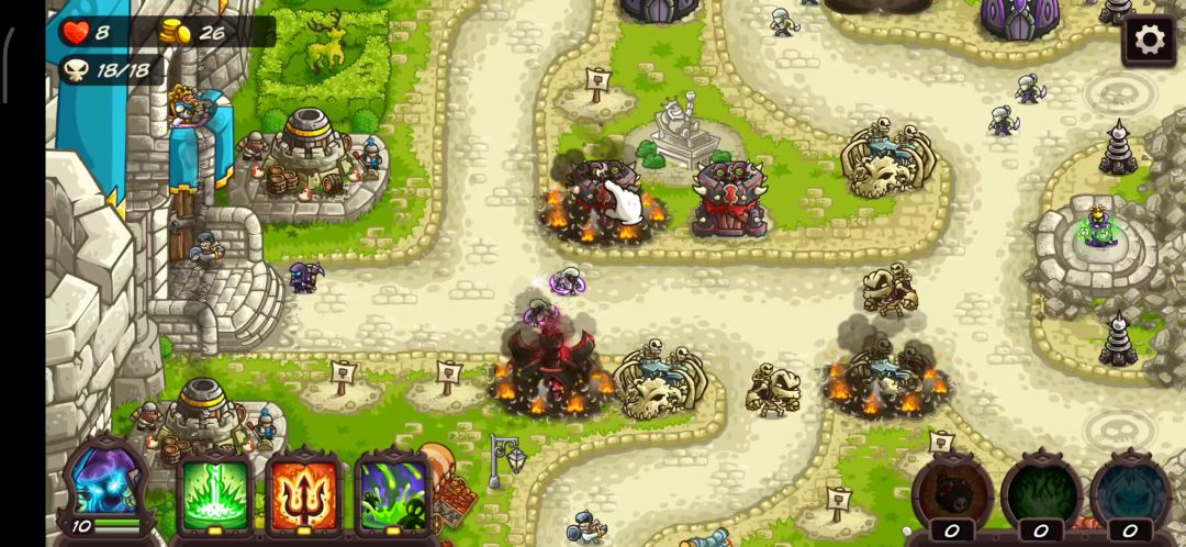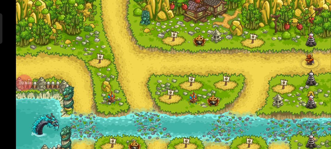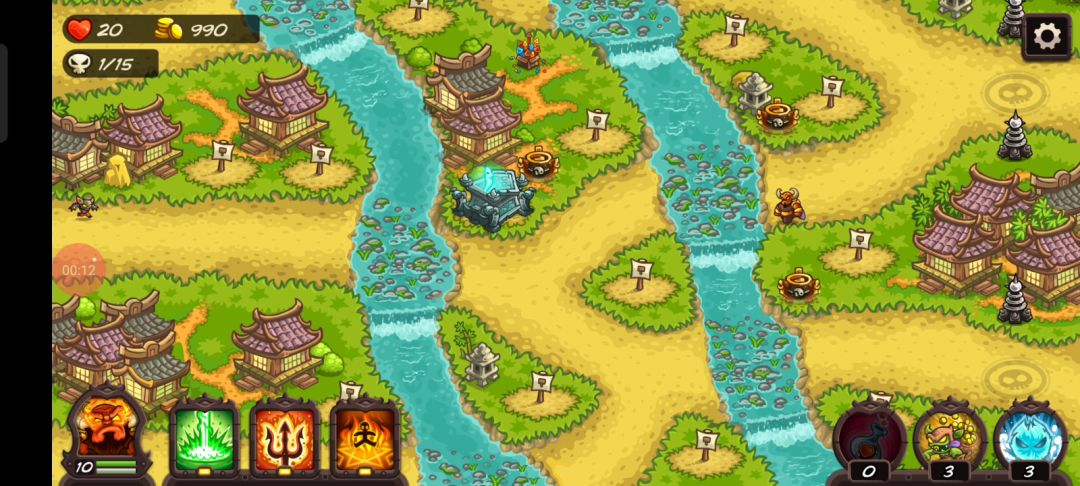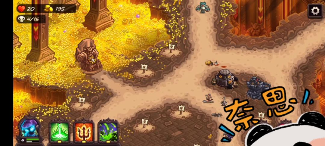 建塔思路:黑色的兵塔高护甲拦怪,幽灵塔的魅惑卡怪,箭塔,英雄提供秒杀技,熔岩塔补伤害。 果然还是女武神比较恶心,感觉最好的还是用那个绿色激光直接清一波比较快,然后直接用援军或者英雄去卡女武神,但应该会有更好的方法。 其他的话,感觉左下的熔岩塔可以更早建一下,或者右上可以造一个弓箭塔防止把一些鸟漏过去。