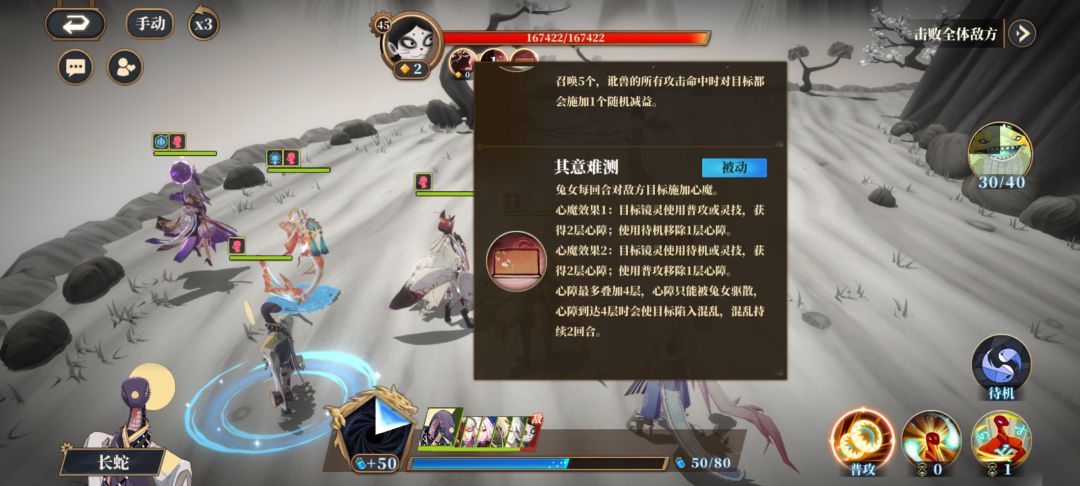 鹅山 止不住的心任务攻略 相信刚打这个任务的人,有很多被打奔溃了,我这里来讲下这个联动任务的攻略,其实非常简单(前面好几次打到奔溃)。 先看下boss机制,如图,因为被动的存在导致boss的大招非常恶心,一旦被触发心魔状态,那就是被控到死,不可驱散。所以核心攻略方法就是不被boss两回合的大招触发被动,下面我就具体讲攻略流程。 阵容推荐单体输出,跟奶和增伤镜灵,单体跟奶一定要够强,不行就多上几个,