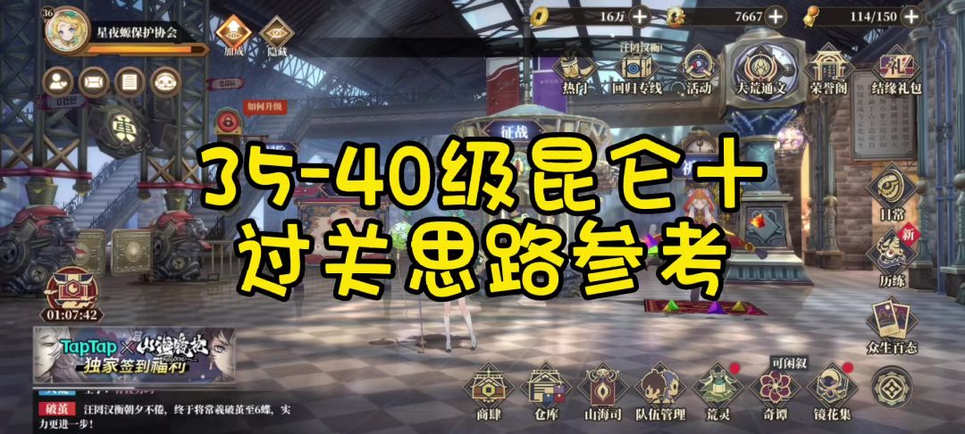 开服送120抽此时不刷更待何时? 开服推荐up池两个天狗和常羲都弄出来,然后就可以存抽等过两天的联动池。 开up池和领取120抽需要等级到十级,注册进图之后直接跟着引导走一路全跳过,然后再刷两关主线到10级就可以邮箱领取了。不要浪费抽在普通池。 10级会开一个无限自选池,必出一黄两紫,个人建议夸父加一只天狐就可以收手。 前期就推主线刷资源本,卡什么就去刷什么,体力用光买个几次体力就好。 附上几个兑