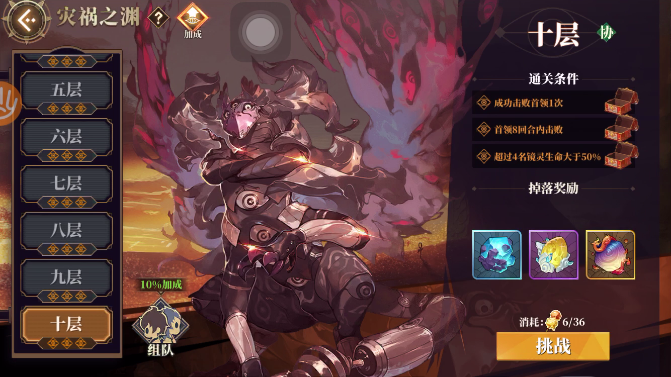 平民0氪过灾难10 希望对新手有帮助 公工技能 555 不要速度 天狗技能225 速度154都带暴击 辅助都速度都要150以上 1速天狐 2速蛇 3速鱼人 4速天狗 5速青鸟 共工我爆伤才225% 暴击100