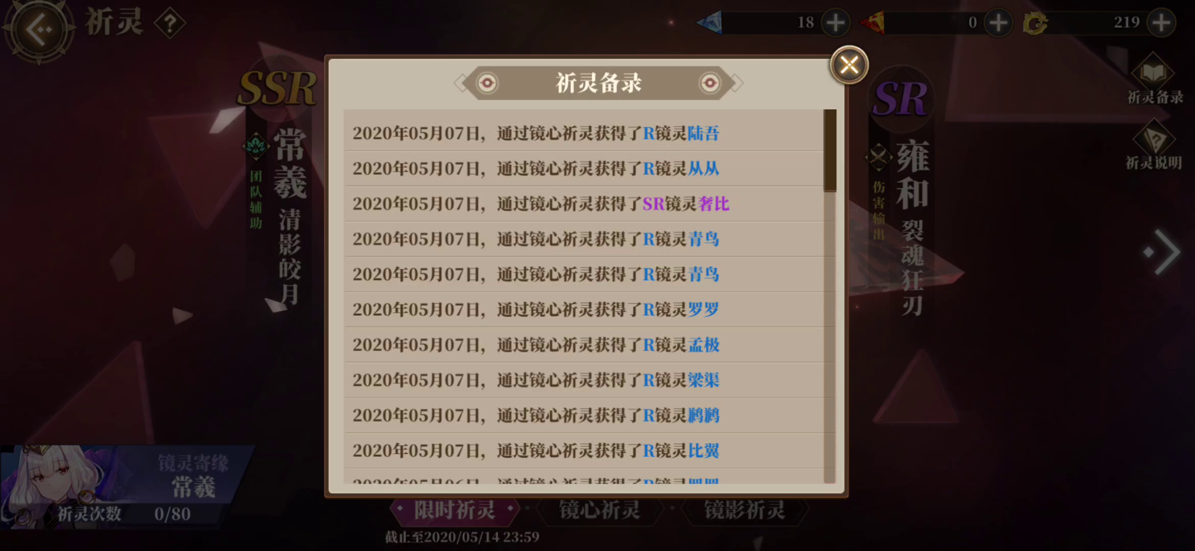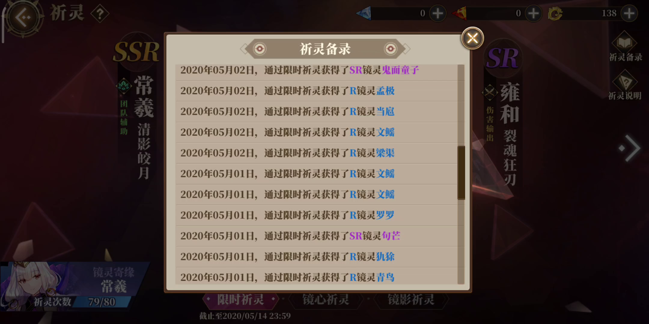从抽到上上个ssr开始计数,到现在大概抽了235次,就出了一个ssr,还是我已经有的而且不用的烛阴😭。像什么十连全是R卡都是常态,连镜影祈灵都全是N卡!!!😭😭😭😭😭