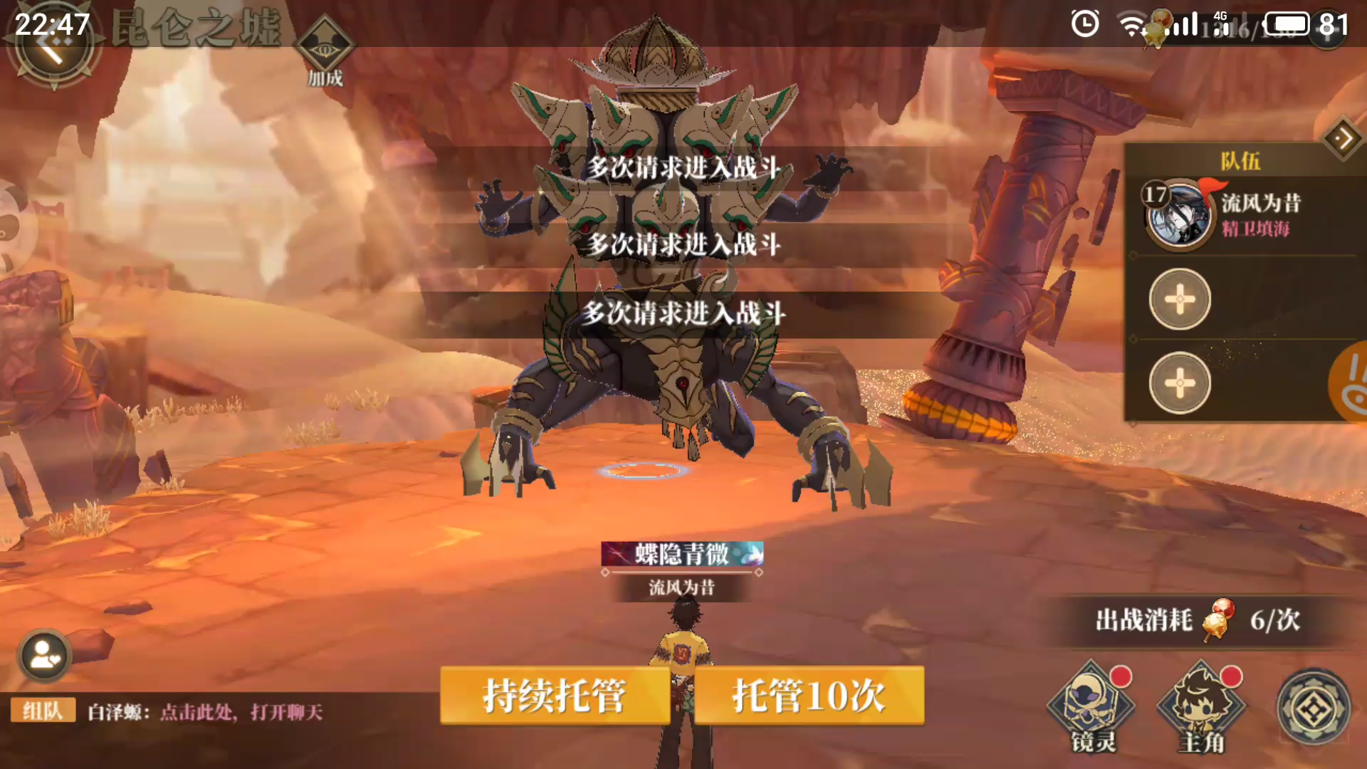姑瑶进不去,我以为我卡了,然后换个玩玩,结果还是没法进入战斗
