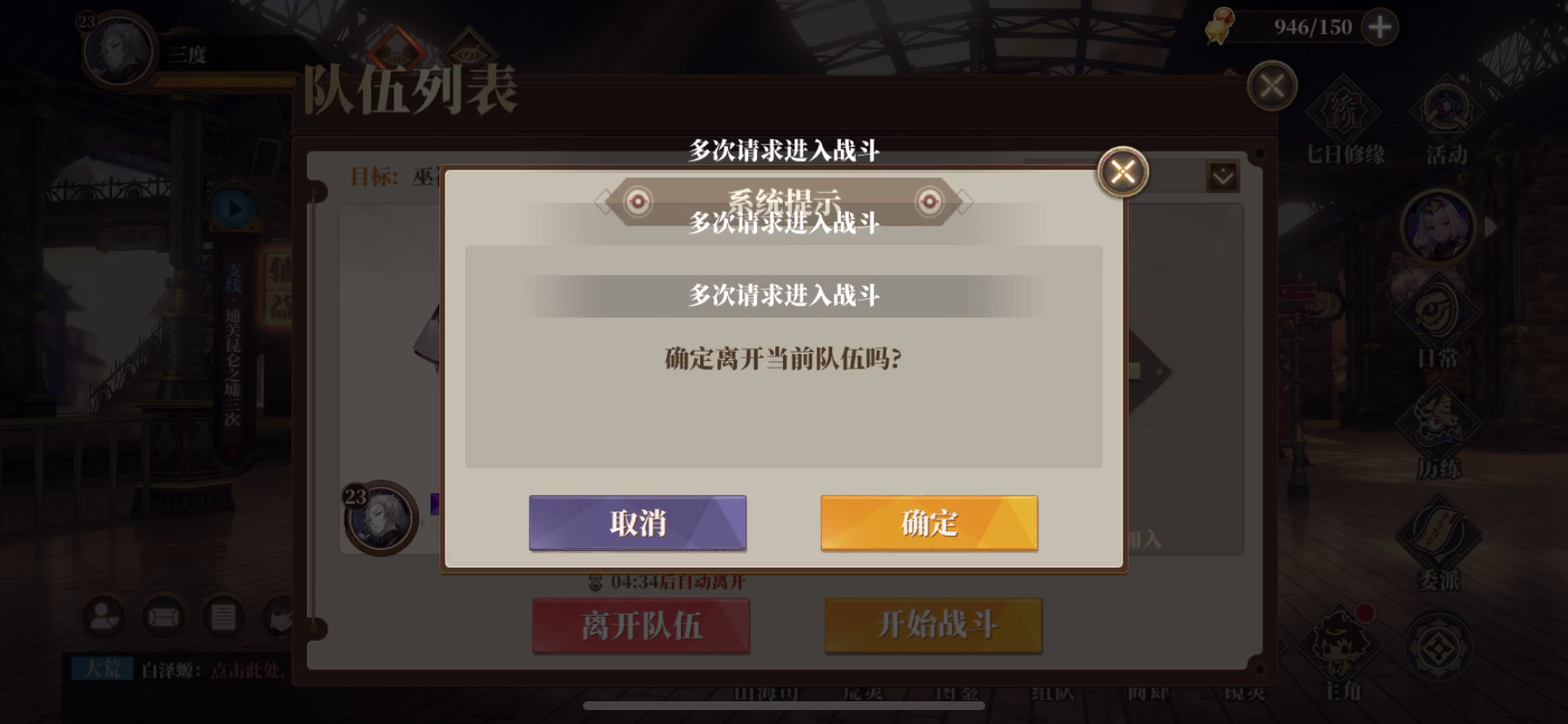 刷个材料本托管没一会儿就bug显示“多次请求战斗”,退出去在主界面看到有显示本点半天进不去,然后我去升镜灵的时候突然就进战斗页面了??进去了还点啥也不管用??