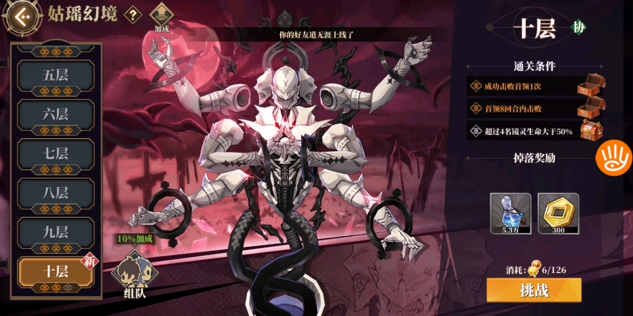 阵容:九尾 凤凰 天狗 天狐 夸父 共工 前面天狐上buff,然后九尾凤凰天狗降低血线,然后共工夸父收尾,简约而不简单,推荐给大家😁