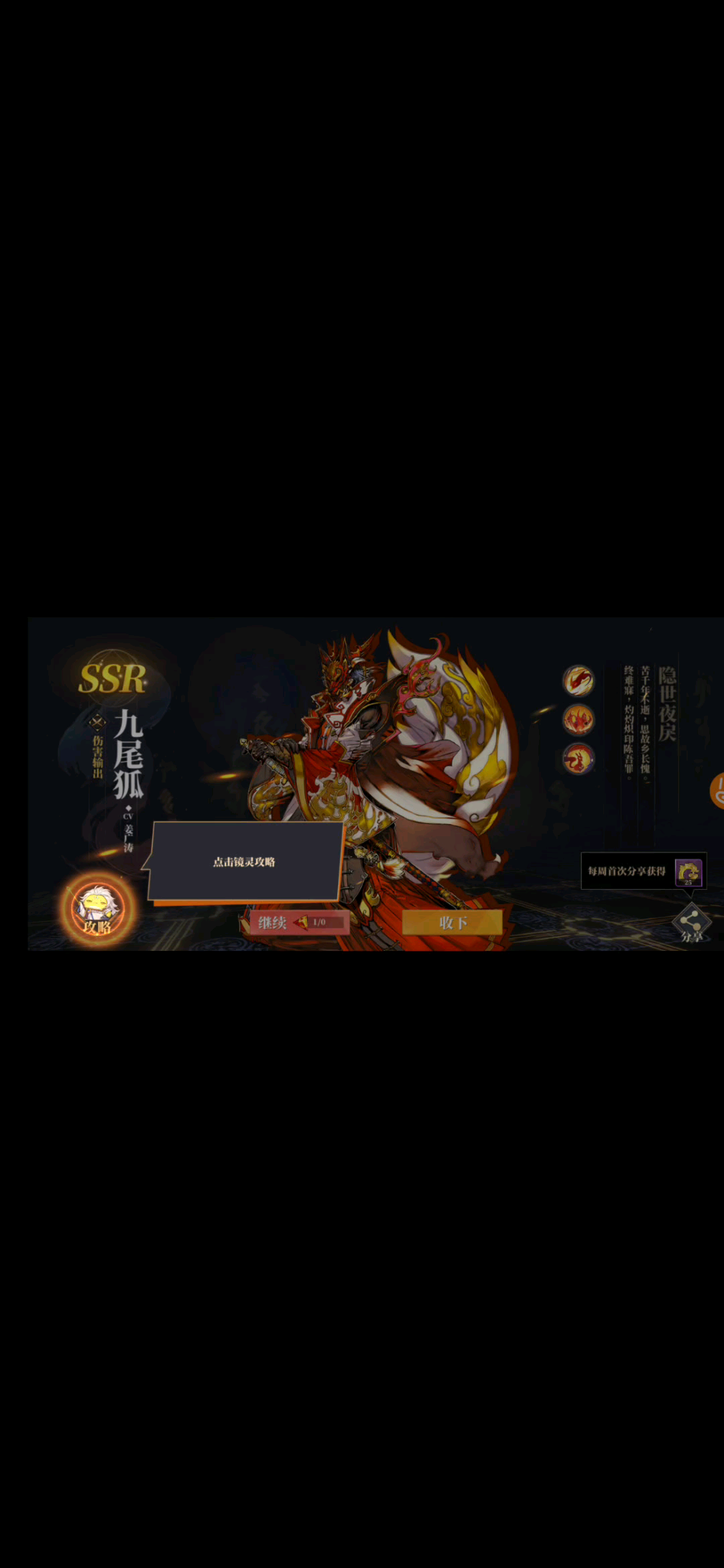 抽到了三个男SSR…没觉得“哇SSR”也没觉得“怎么就三个”,(其实三个我觉得OK),想要女孩子SSR……可爱的凶残的我都可以,只要性别为雌就行! 所以录屏里男角色都直接跳过。 啊,希望人物性格故事啥的能越来越立体。