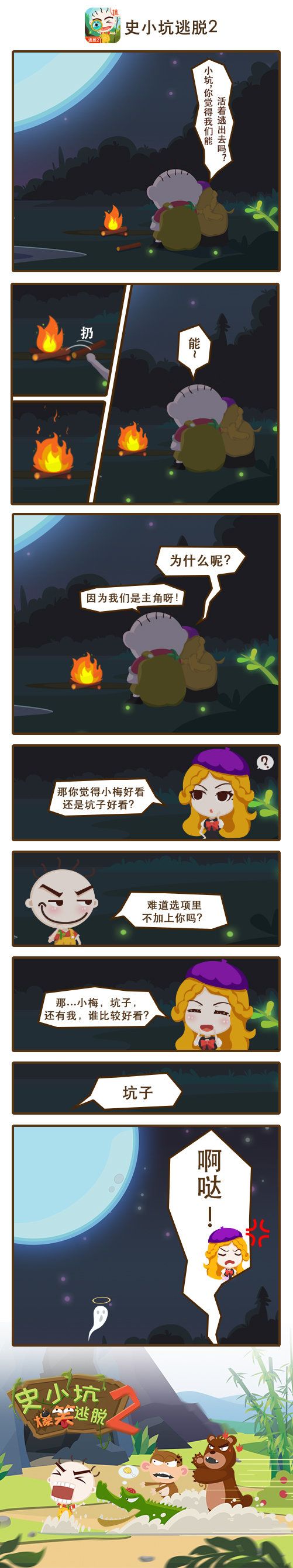 本漫画由《史小坑爆笑逃脱2》男主角史小坑倾情演绎,丛林逃脱,爆笑解谜,期待你的脑洞!