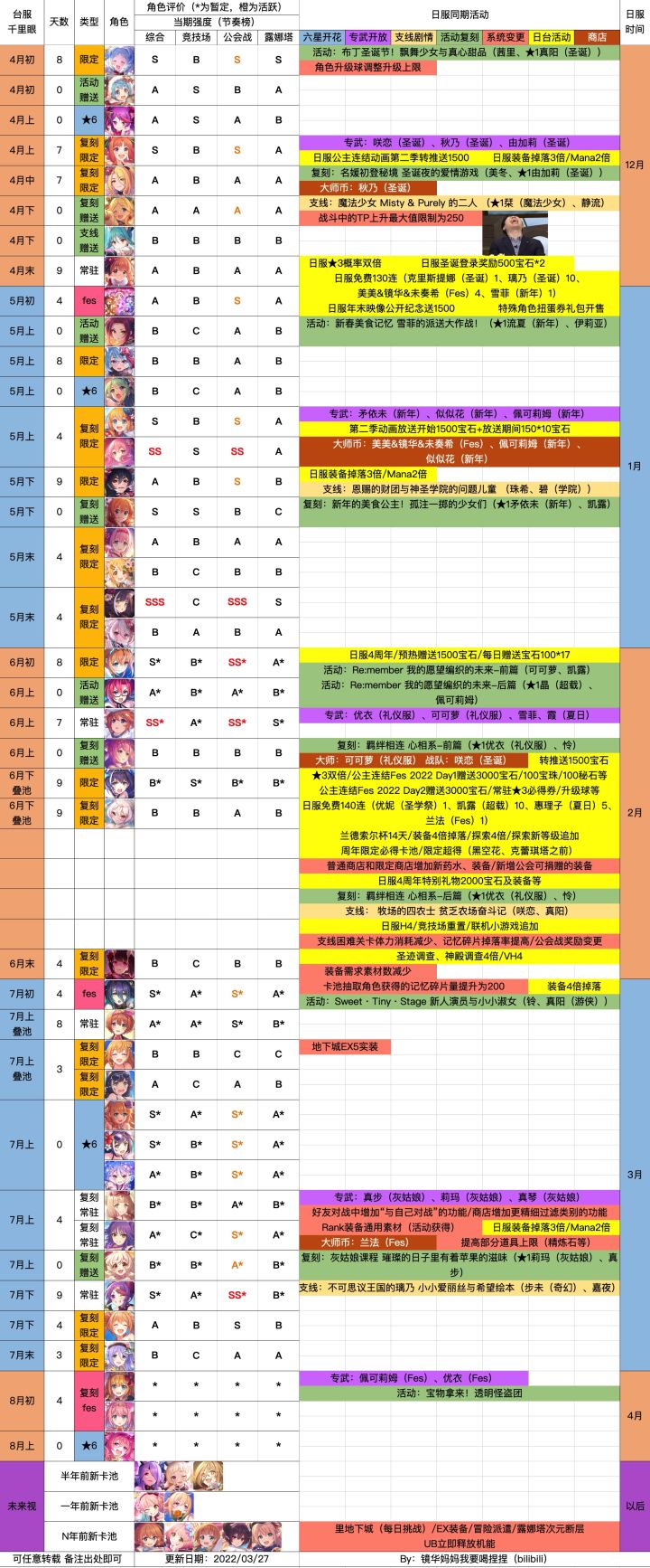 2022活动表不知道有人发没,没人的话我就放一下吧