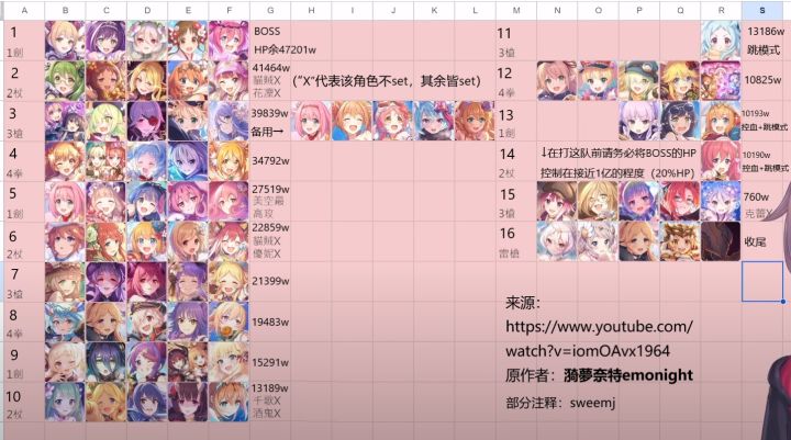 --------------------说明:本作业所有队伍皆为set刀。角色练度:等级、rank、装备强化尽量都拉满,不考虑+10等级突破,EX装备全金装,也是尽量满破,有粉装更好,记得至少上3星。BOSS机制:每完整打完一场后BOSS就会换武器,轮换武器的顺序:剑→杖→枪→拳→以此循环,不同武器不同打法,BOSS血量>20%(1亿HP)后,下一场就会切换成最终武器。----------