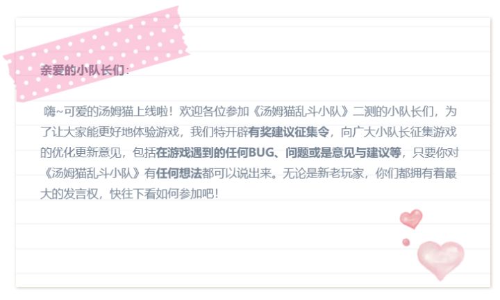 各位亲爱的小队长们:首先想在这里对大家说一声感谢,感谢你们对《汤姆猫乱斗小队》的喜爱,昨天在taptap和论坛上收到了几百条来自玩家的留言评论,我们都认真地看完了,谢谢大家的支持,有你们在我们就充满了力量!《汤姆猫乱斗小队》自立项到目前为止,中间经过无数次测试,也经历了与众多玩家一起的共建和反复修改。游戏的画风、玩法与各种交互细节等一度得到了玩家们的一致好评,而这也让我们团队为之鼓舞,不顾日夜