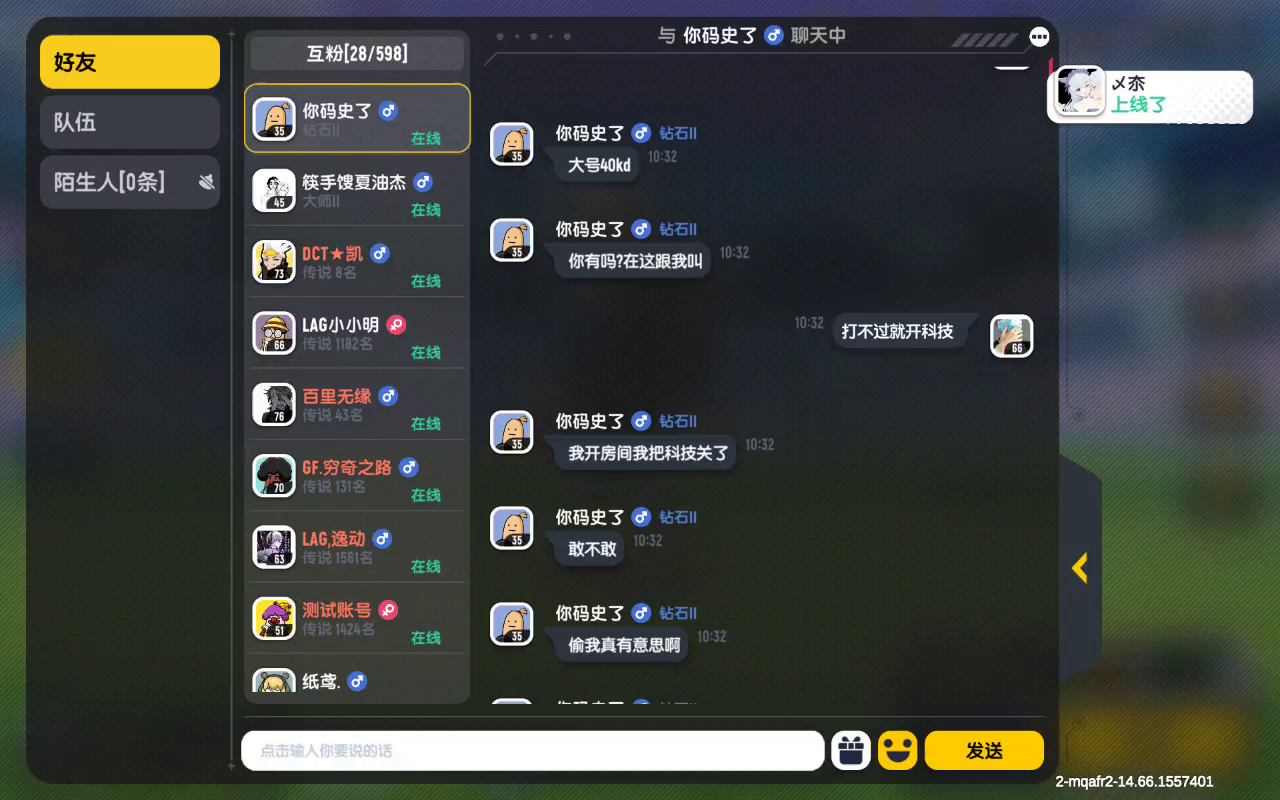 先行服,二号是挂,id:esg7wk 我怕被做挂车举报,就退了 这6呢,kd30多,千里之外秒优选。 官方不要误封我,我一开始不知道这是挂,知道后我就退了。