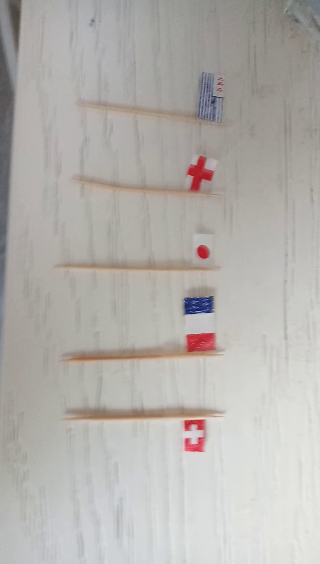 看我做的五个旗子。所以没中国,因为材料不够了。