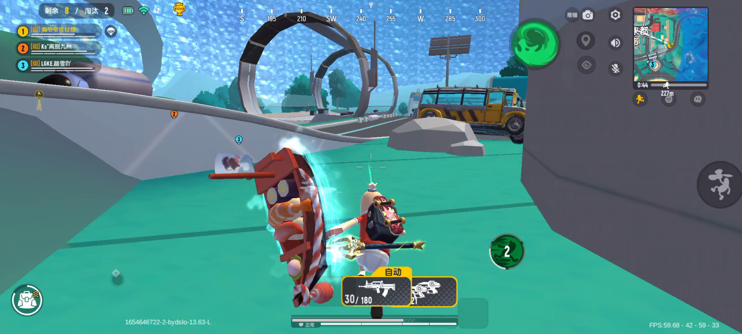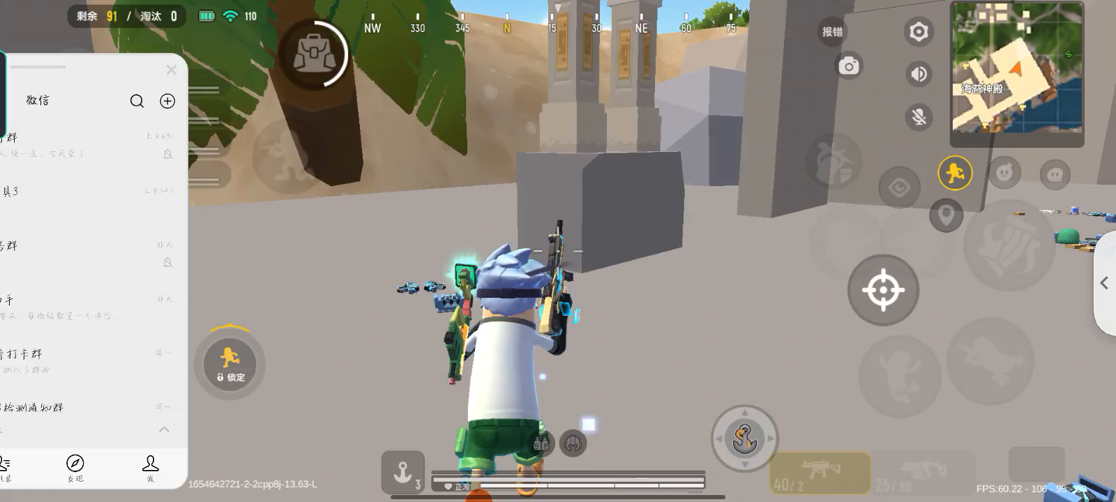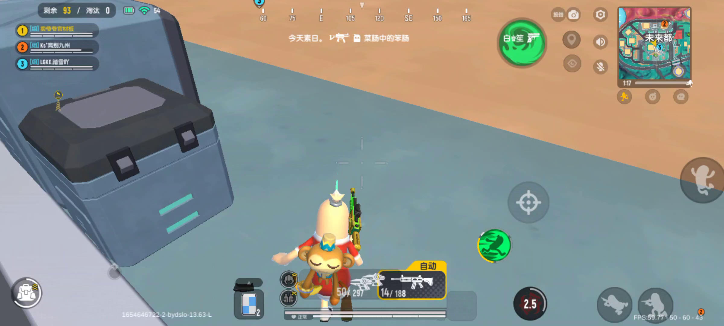 刚才被轰炸区给炸击倒了,身上全是四级套,主武器是aug和awm,刚复活完队友,在这之前还灭了一队人,淘汰了七个,可以说装备非常好,很有信心可以吃鸡,结果队友在服务起来的时候,我的装备就都不见了,并且走路还是平移,我就重进游戏,结果就成这样了