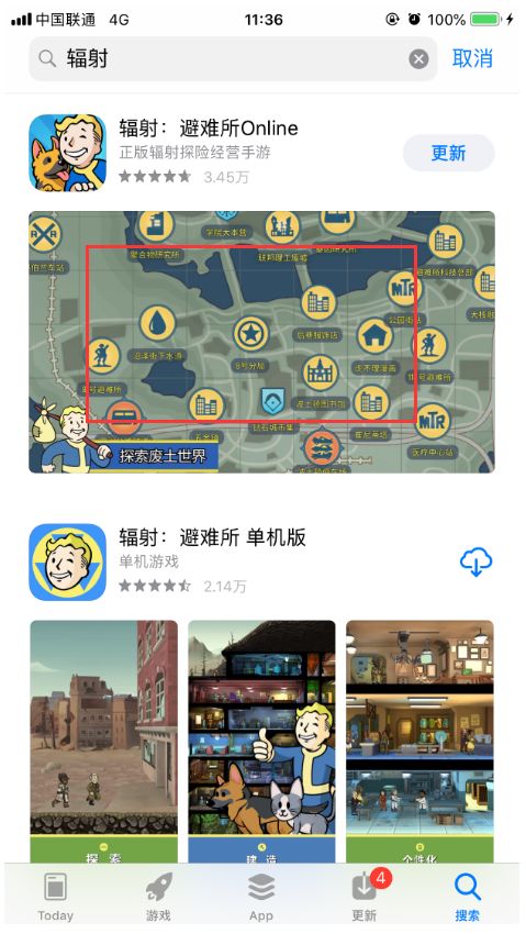 各位监督者:《辐射:避难所Online》今天7月4日09:00更新了新版本,iOS的小伙伴需要到IOS APP商店下载版本,部分小伙伴表示没有下载到新版本,这里给大家同步下方法:步骤一进入IOS商店,找到辐射:避难所Online,点击红色框的位置,进入APP详情步骤二进入APP详情界面后,在图标左侧,点击‘更新’就可以拉,等待游戏下载完毕。就可以畅快体验新版本了哦。