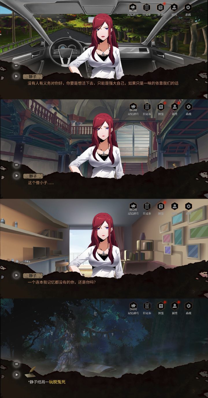 游戏主线玩完了,大体上来说,剧情方面还不错,几乎步步为进,悬疑感紧扣每一环。可能是游戏篇幅所限,没有小说一样细腻的描写和情节扩充,感觉有挺多剧情上的坑没填上。还有些分支选项的导向结果不是很明显,前后逻辑的必然性比较含糊,如为什么加减精神值,为什么死亡等等。说说人物,也是对我最大的感触。①主角身世从最初就一直是个迷,还患有新型失忆症,这种病还比较前沿,全世界都是试验阶段,解药能否研出还是个未知态。