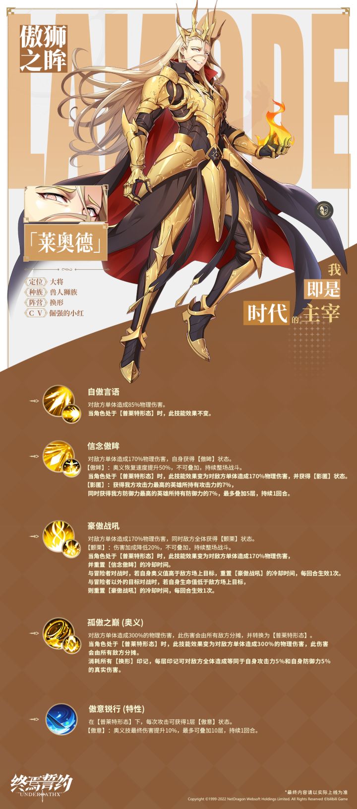 #终焉誓约# 〓 傲狮之眸-莱奥德 〓全新英雄「莱奥德」即将来到艾恩大陆,更多角色资讯关注请后续动态,斯蒂为您揭晓!