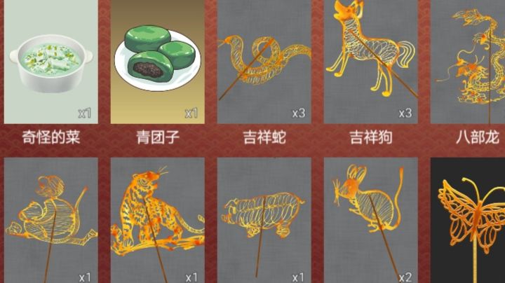按批量赏赐由上而下 泡绿菜花+武力 炒煌鱼片+政治 女侠 +武力 御膳豆黄+道德 鲫鱼豆儿羹+武力 猪肉饼 +政治 清蒸时蔬+武力 东坡脯 +统御 吉祥猴 +智力 煨冬瓜 +政治 什香菜 +魅力 鳢鱼汤 +统御 挂炉沙板鸡+智力 鹅肉巴子+智力 氽鱼圆 +统御 鱼饼炙 +政治 麻辣鹌鹑+武力 抓炒鲤鱼+道德 狮子头 +统御 浑羊殁忽+政治 文昌鸡 +魅力 炒时蔬 +智力 葱菲羹 +统御 酿冬菇盒+