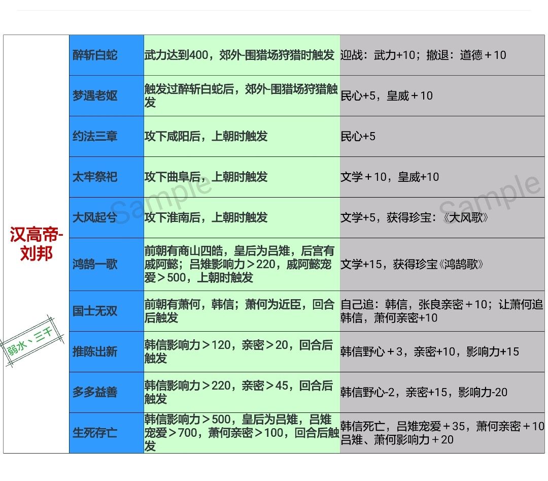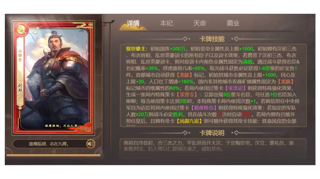 声明:本攻略大部分搬运自盒子的大佬“弱水三千”,已经得到了授权。同时也有一部分是楼主自己编辑而成。 小声逼逼:授权其实早就要到了,但由于某些原因(主要是期末,其次是懒,现在才来开帖子) 为了方便各位小伙伴们刷本纪,我特地弄了这个帖子。已经向原作者索要了授权,持续更新,我会按照朝代划分,并在朝代中根据历史排序。 今天开始,有空就更。 一、汉朝包 1.汉高祖——刘邦 推荐训卡:汉初三杰,商山四皓 推荐