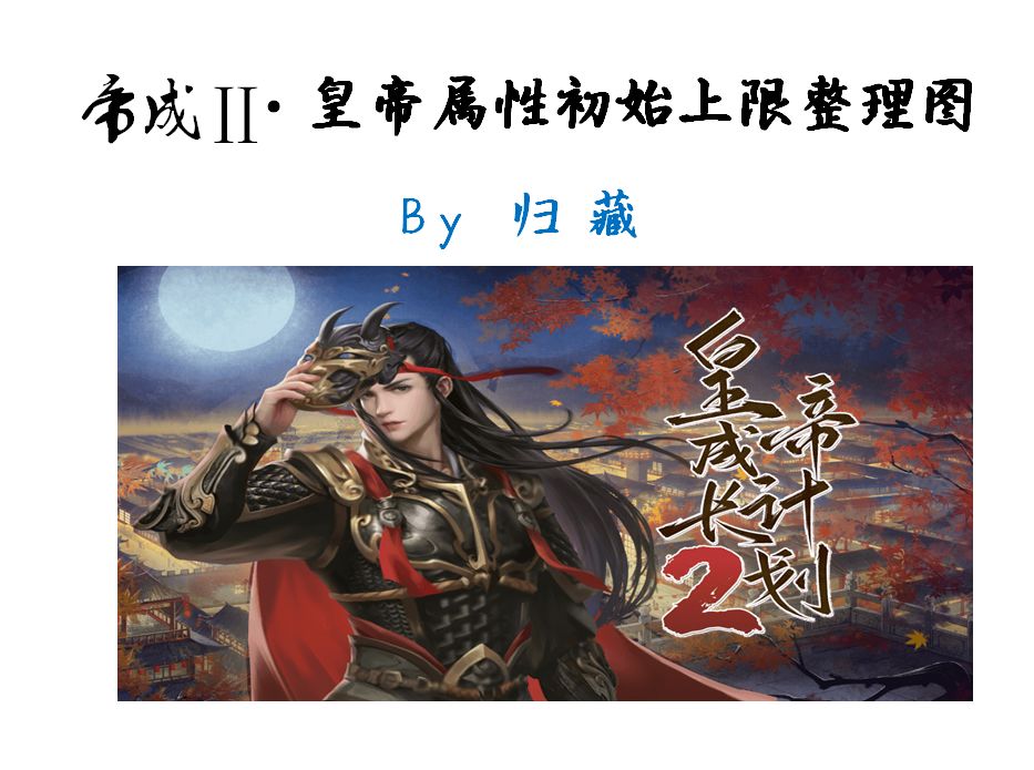 大家好呀,我是公孙莫,第一次在taptap上发帖,请各位多多支持,如果有不懂的地方或值得改进的地方,请在评论区回复哦 本帖子是为总结整理加皇帝初始属性和初始属性上限而写的如有疏漏和可改进之处,敬请指出! 截至2024年5月12日修改前加初始属性的天命共10个 加初始属性上限的天命共31个 两者皆有的(不算入上面2者)的共11个 注明:本贴的“属性初始上限”即为游戏一开局就已加的属性上限。虎狼之君和