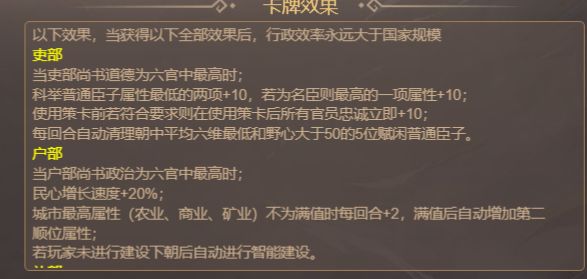 六官制 南阳五圣 不急着过图用十三太保也还不错 训卡封神四象可以去四方阁找一个土行孙抓将领 魏晋风流 君子六艺 百家争鸣 西魏八柱国 周文王演易 补充:无时间限制可以用 岁月如流配韬晦之计 开局全属性刷满。 有时间限制用送礼物的方法刷属性,也可以直接用龙虎蓝卡宰制朝廷直接把属性提满,但是这样属性就永远固定了。